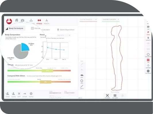 Capture and measure your progress in 3D. Evaluate your full body shape and body composition in graphs, reports, and assessments. Utilize the data to track, and stay dialed-in with a trainer, coach or physical therapist.