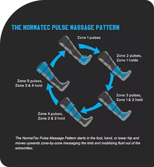 NormaTec offers two different systems for the need of different types of users. The Pulse, which is designed for individual athletes and small teams: benefits include performance enhancements and faster recovery. Pulse Pro is an advanced rehab and recovery system that lets users customize every aspect of their sessions. This system is suitable for post-op and post-injury use. We utilize both systems at REJUUV Wellness.