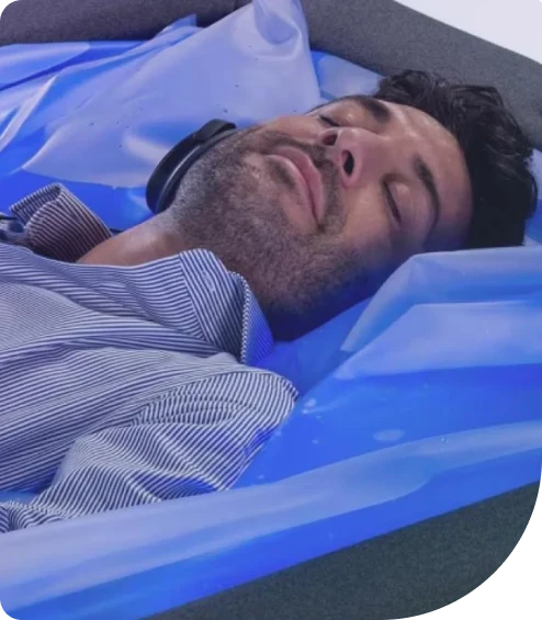 Dry flotation therapy is highly accessible for almost everyone, unlike traditional wet floating, which may have some limitations. There are no medical contraindications. However, some individuals who’ve carried tension for many years might experience temporary, mild discomfort as their body adjusts to deep relaxation. This sensation typically passes quickly.